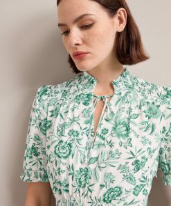 Irina Cotton Blend Midi Dress – Green Palm Floral Print