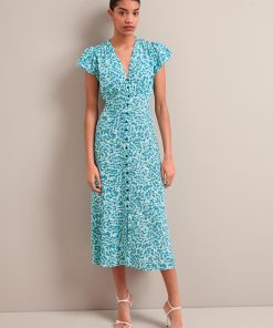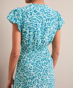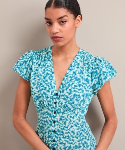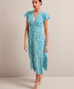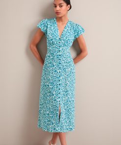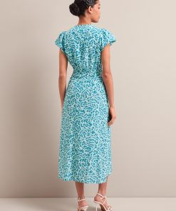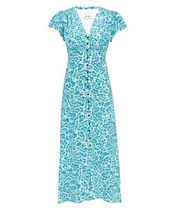 Leila Silk Maxi Dress – Blue Green Feather Print